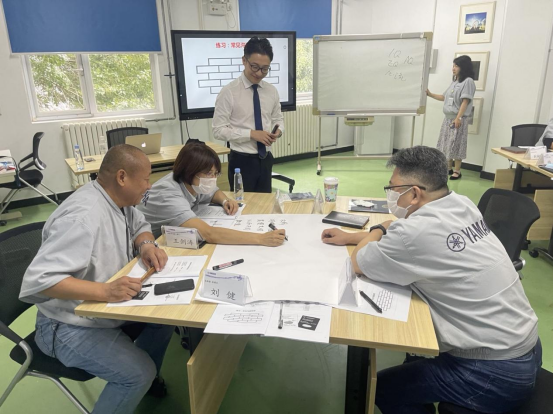 趙老師通過真實(shí)案例導(dǎo)入課程,運(yùn)用“推論階梯”傳授主動溝通的意識,以“看視頻、學(xué)案例、分析問題”的教學(xué)手法引導(dǎo)大家逐步樹立“自主性溝通”的態(tài)度,并通過大量小組研討練習(xí),讓大家體驗(yàn)到波長、詢問、理解等溝通技巧的奇妙。