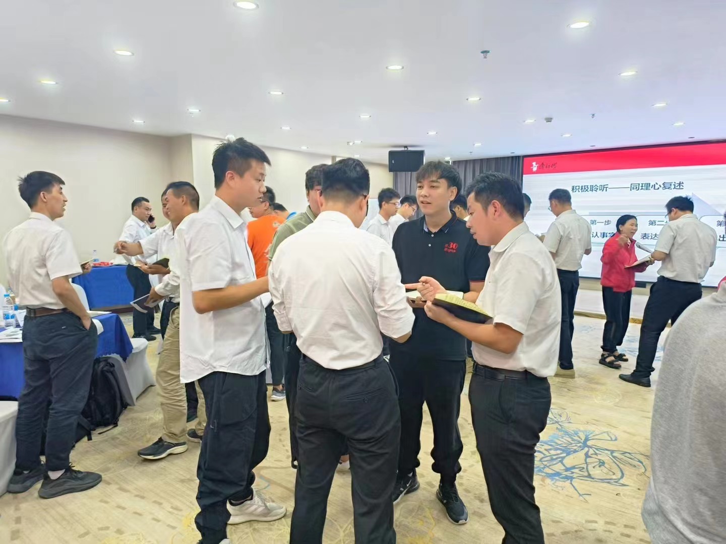 2023年5月25日某世界五百?gòu)?qiáng)集團(tuán)廣州行銷公司組織公司員工參加了天津漢邦企業(yè)管理咨詢有限公司張老師主講的《營(yíng)業(yè)所長(zhǎng)高績(jī)效團(tuán)隊(duì)管理》課程,課程特色:快速見效: 所教授技巧及練習(xí),經(jīng)過實(shí)踐驗(yàn)證均能實(shí)時(shí)帶來(lái)改變;互動(dòng)體驗(yàn): 通過互動(dòng)式學(xué)習(xí),引發(fā)學(xué)員深刻感悟,倍增學(xué)習(xí)成效;實(shí)戰(zhàn)演練: 通過演示和輔導(dǎo),讓學(xué)員即學(xué)即用,實(shí)戰(zhàn)演練成習(xí)慣;